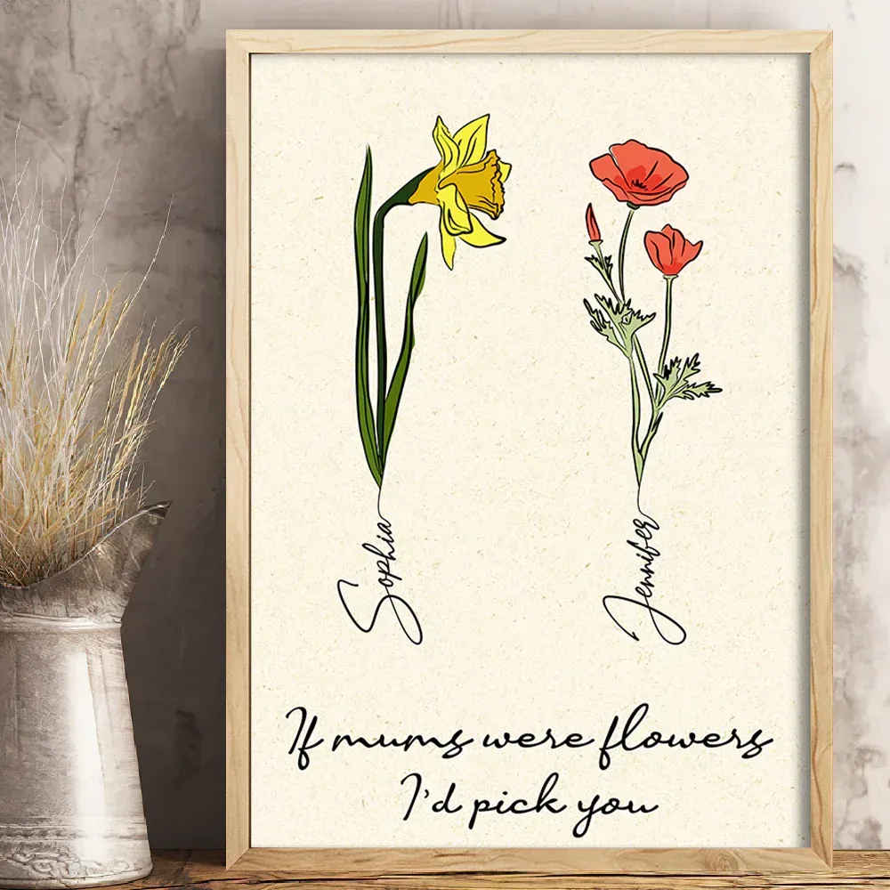 Cadeau pour maman et fille fils, fleurs famille toile Poster