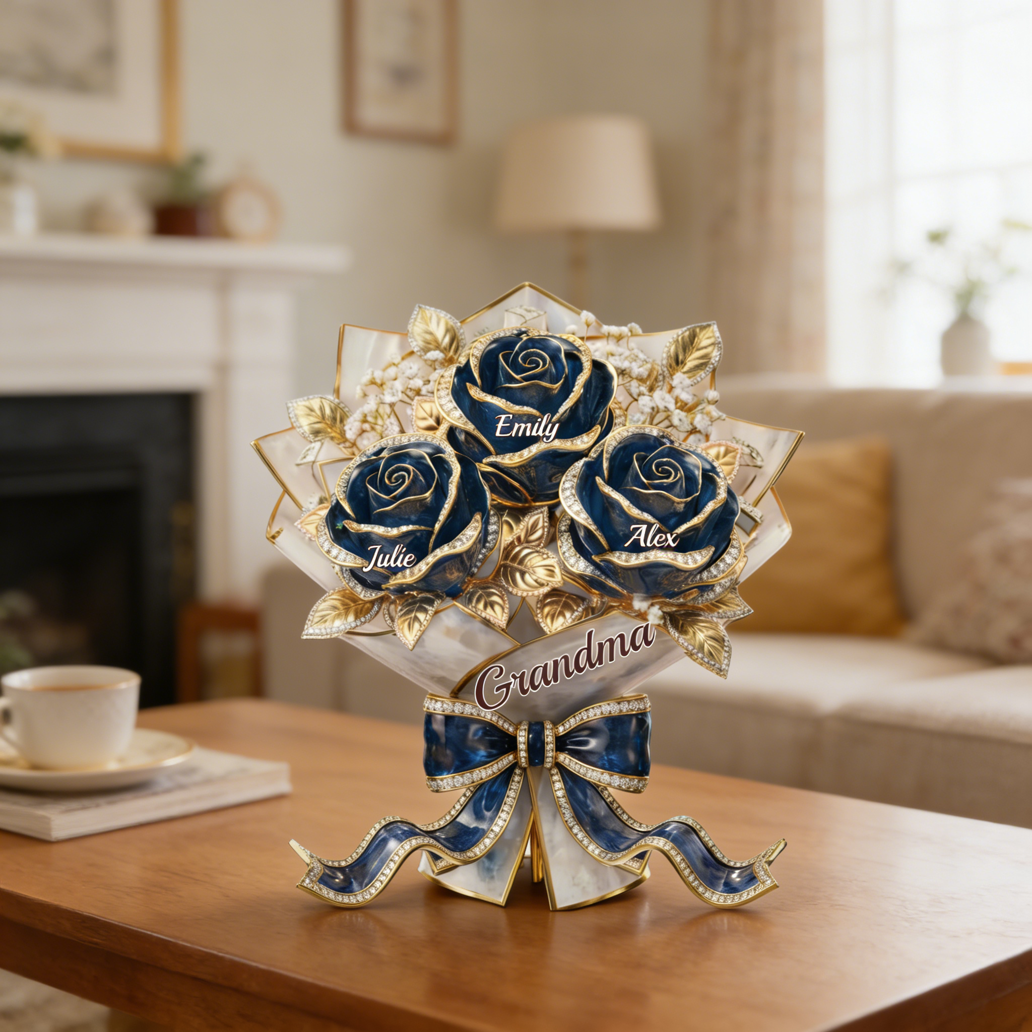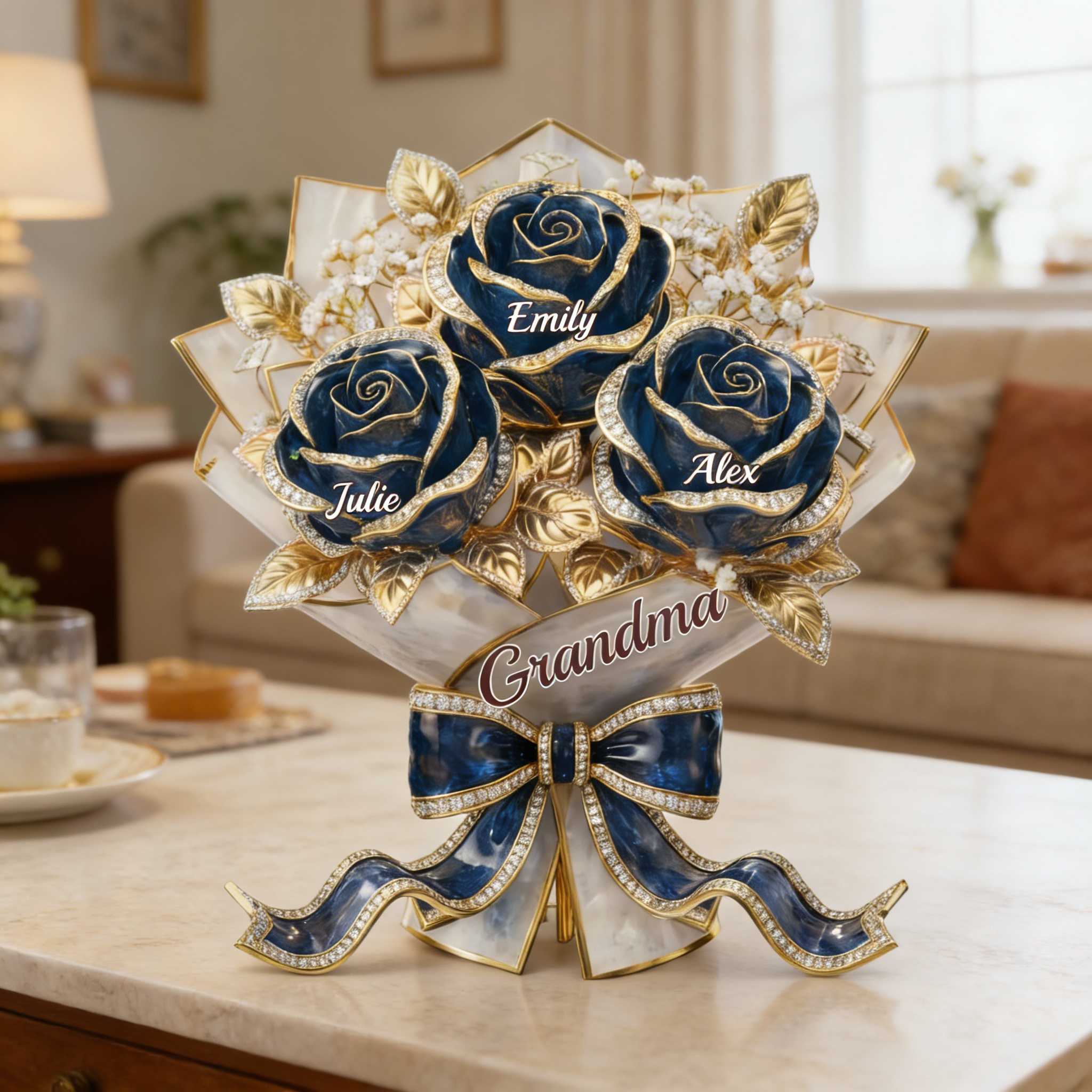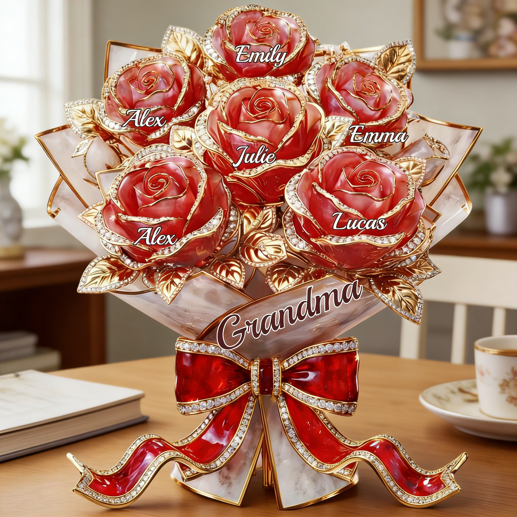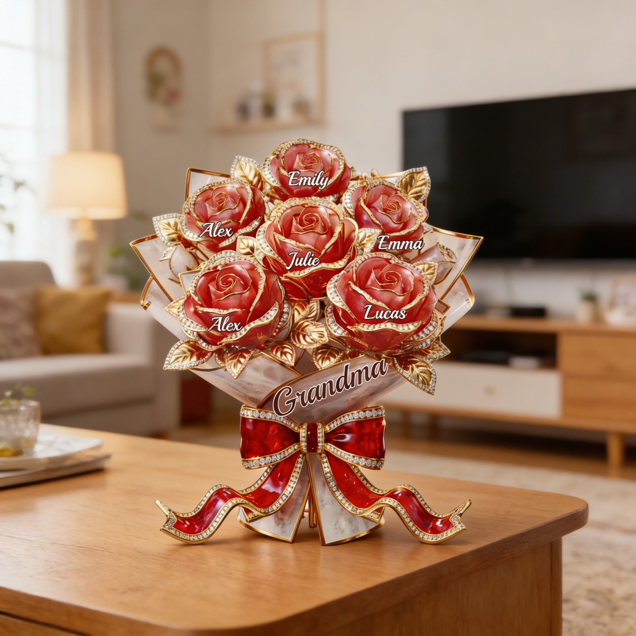 Pour la meilleure maman-personnalisé Rose Bouquet acrylique Plaque-noms personnalisés cadeau pour maman | Grand-mère