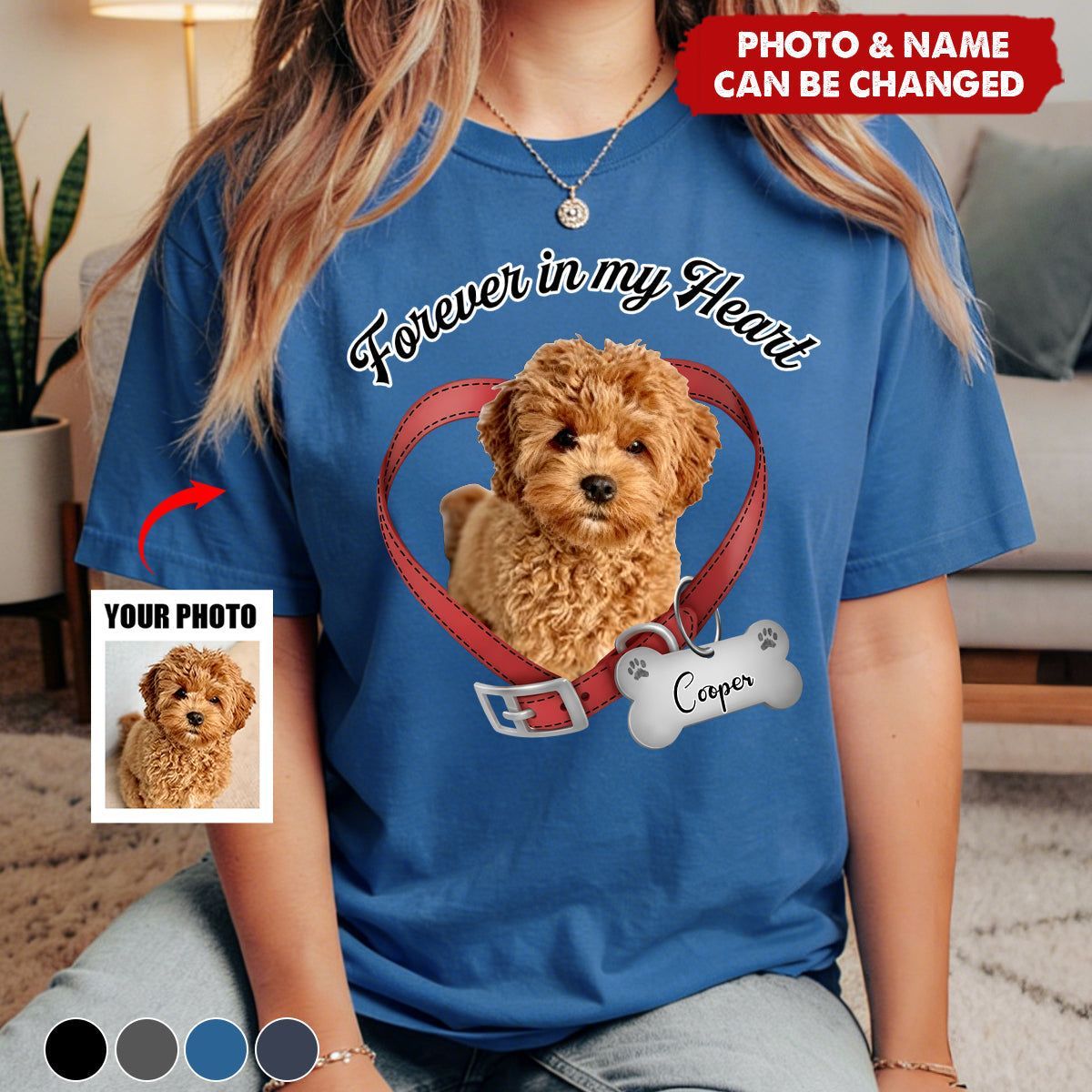 Photo personnalisée pour toujours dans mon coeur chien Memorial chemise sombre
