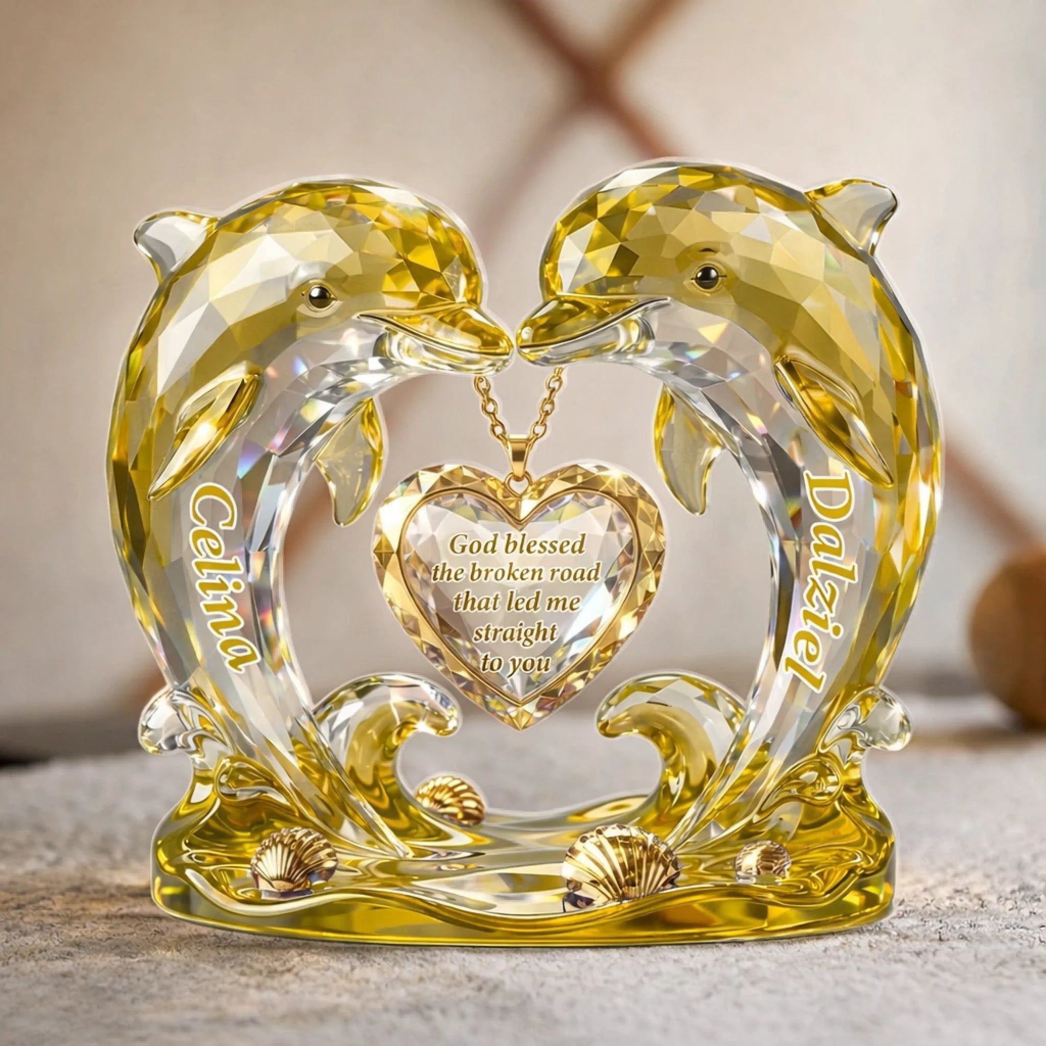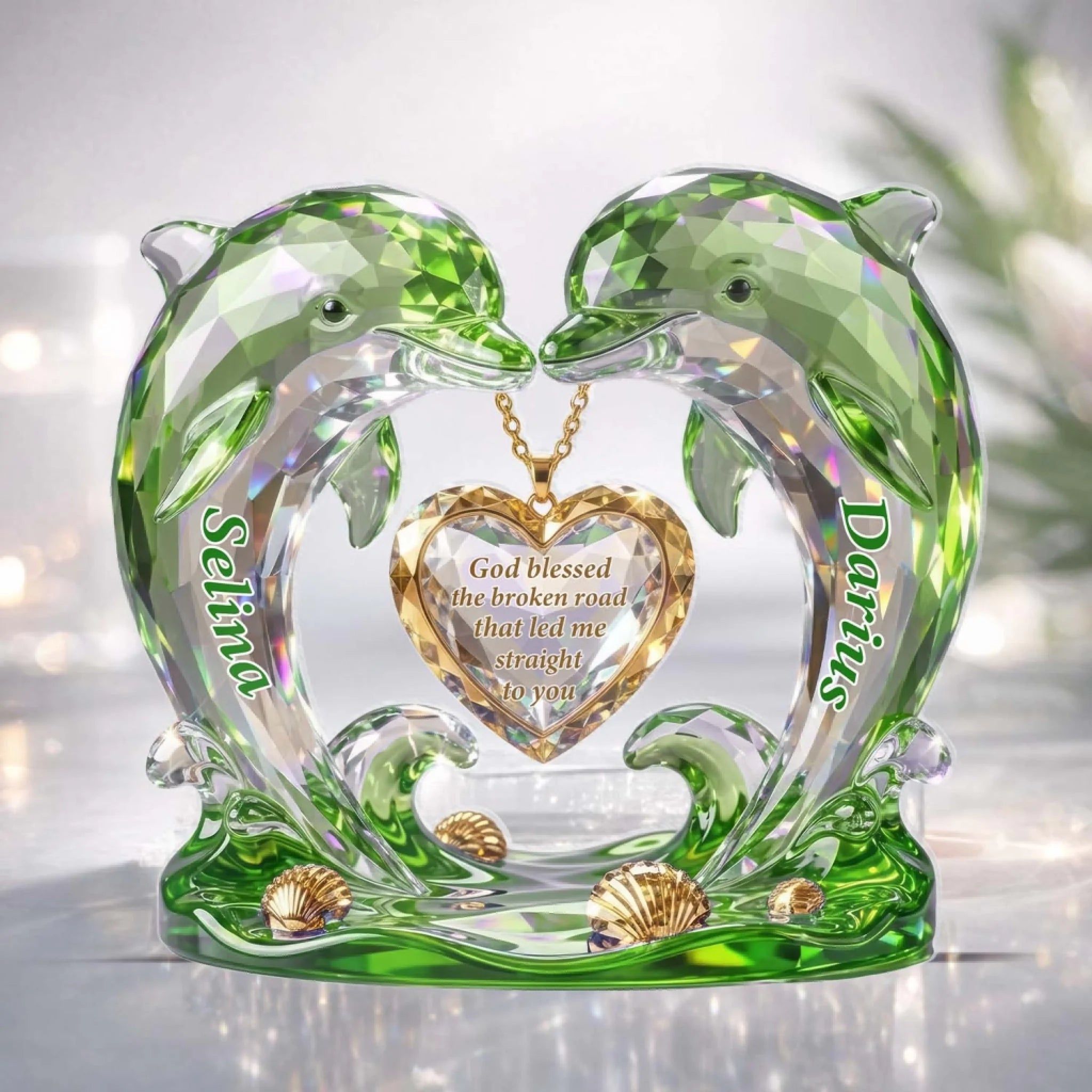 Dauphin de cristal voyage-Plaque de bénédiction personnalisé | Cadeau souvenir d'anniversaire