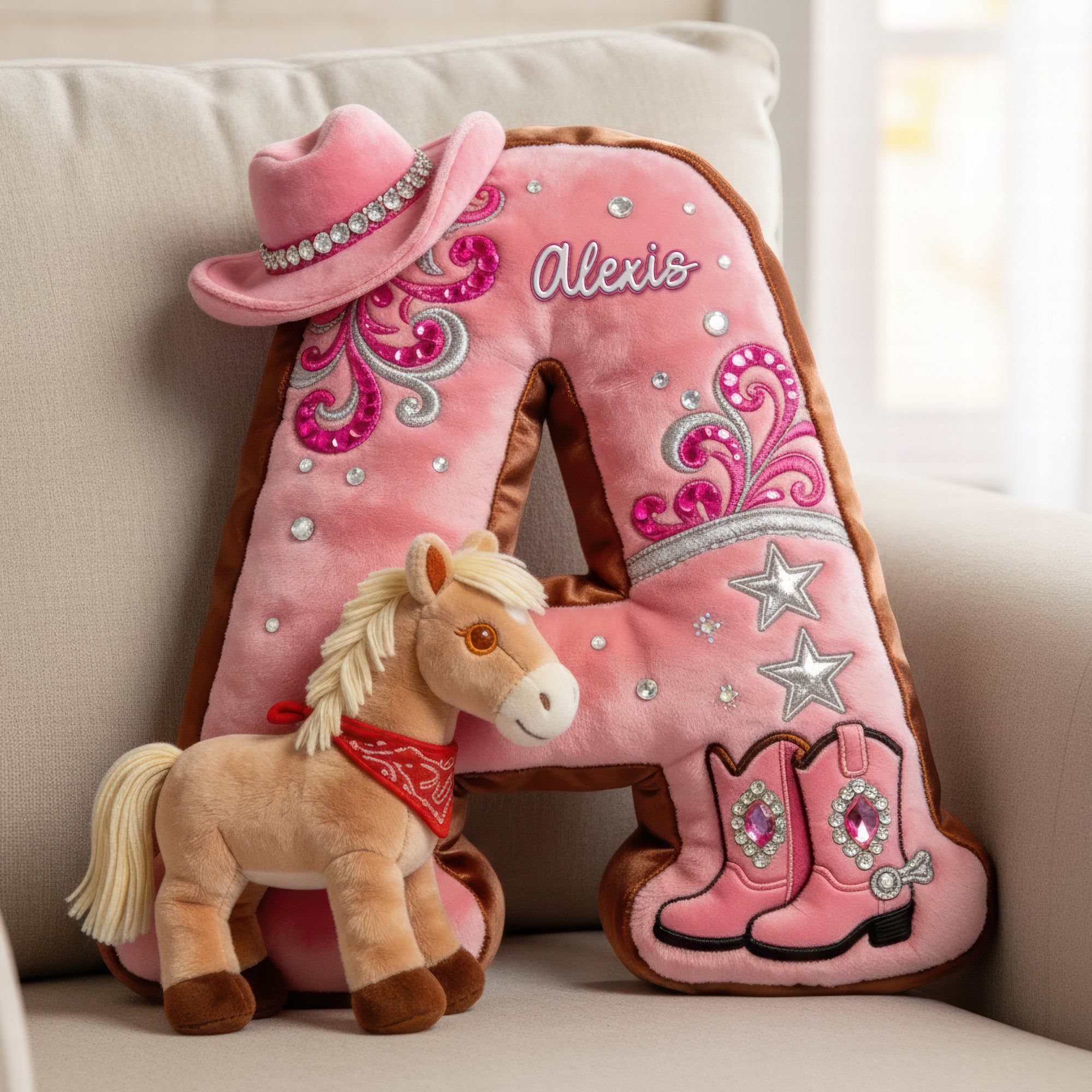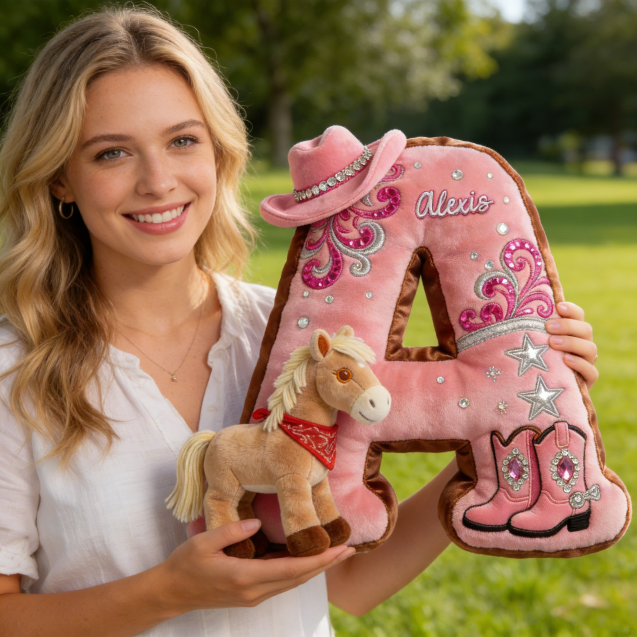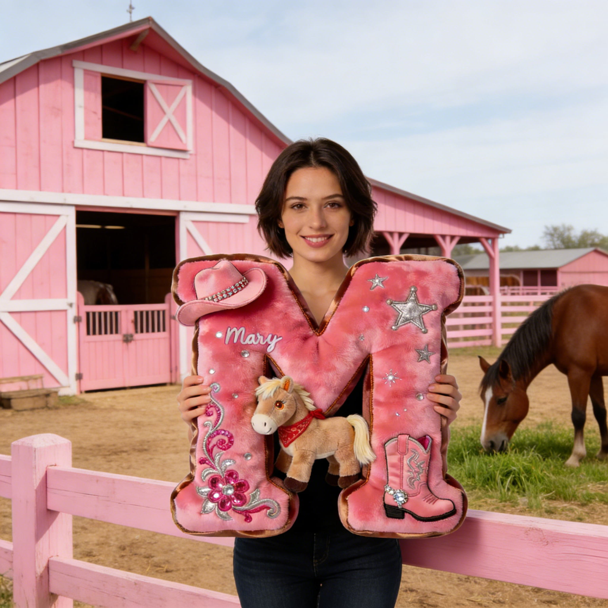 Cowgirl Alphabet lettre initiale oreiller-cadeaux personnalisés pour les amateurs de chevaux