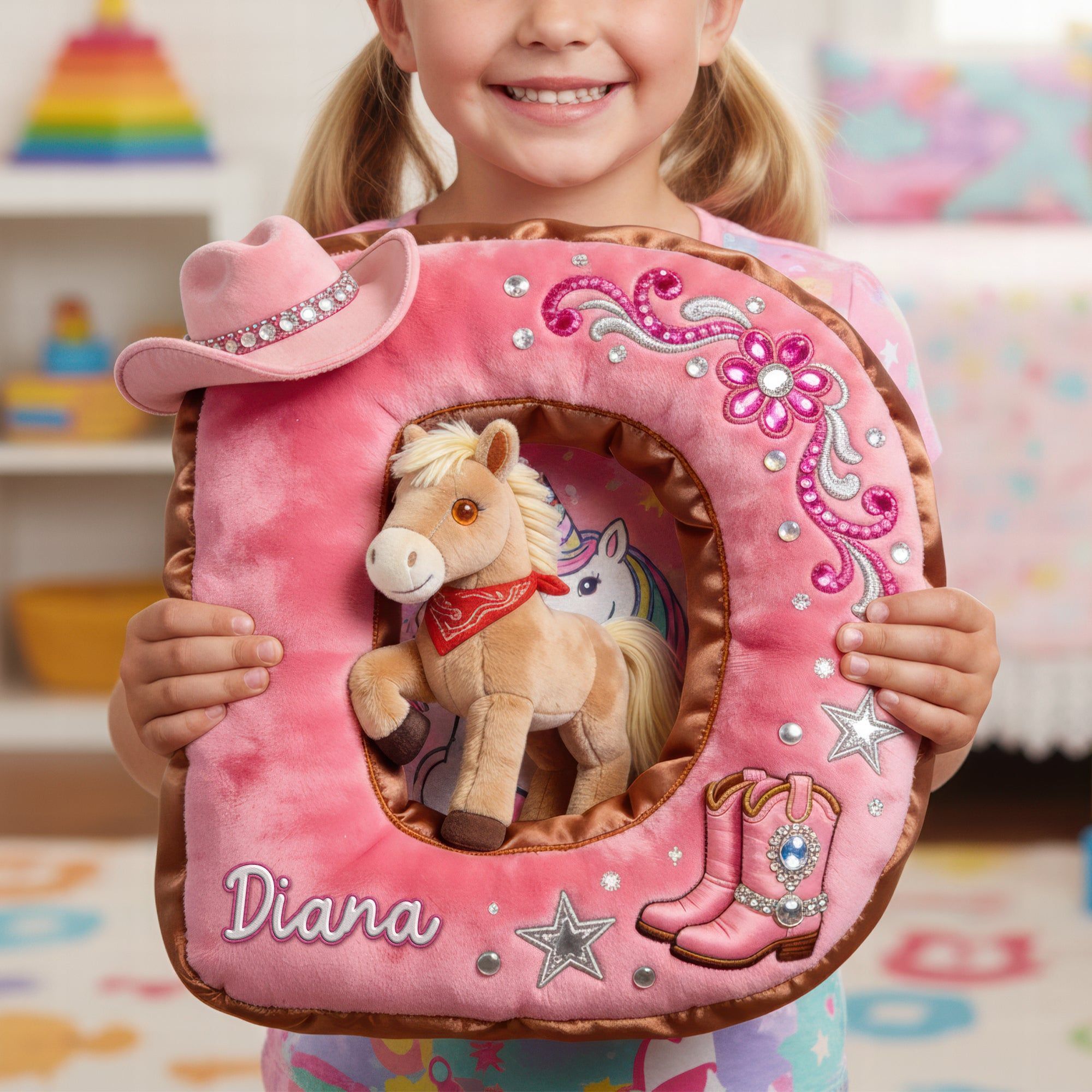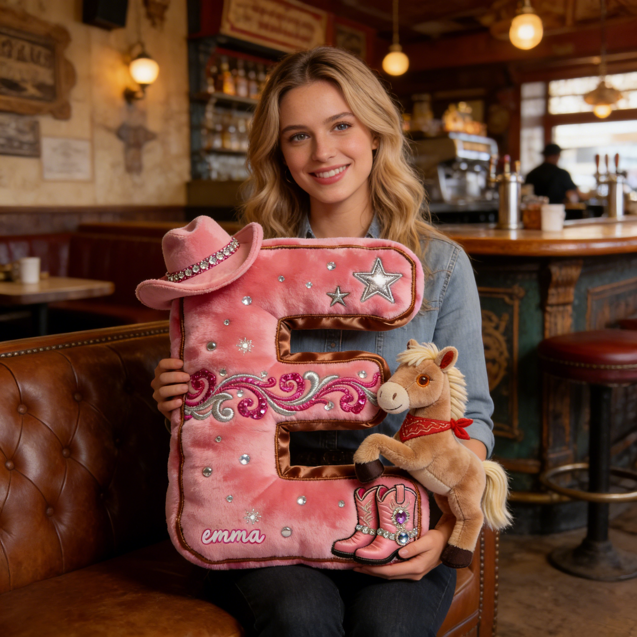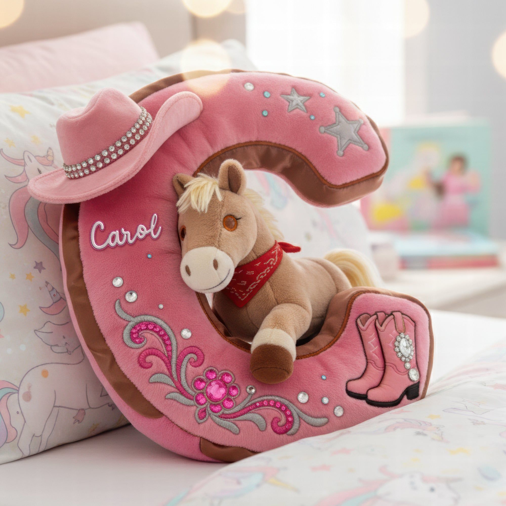 Cowgirl Alphabet lettre initiale oreiller-cadeaux personnalisés pour les amateurs de chevaux