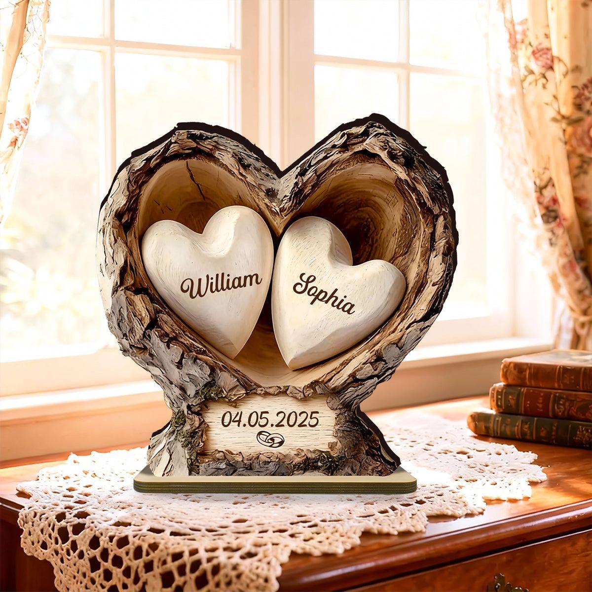 Décor de coeur de trou d'arbre en bois personnalisé, cadeau d'anniversaire pour Couple