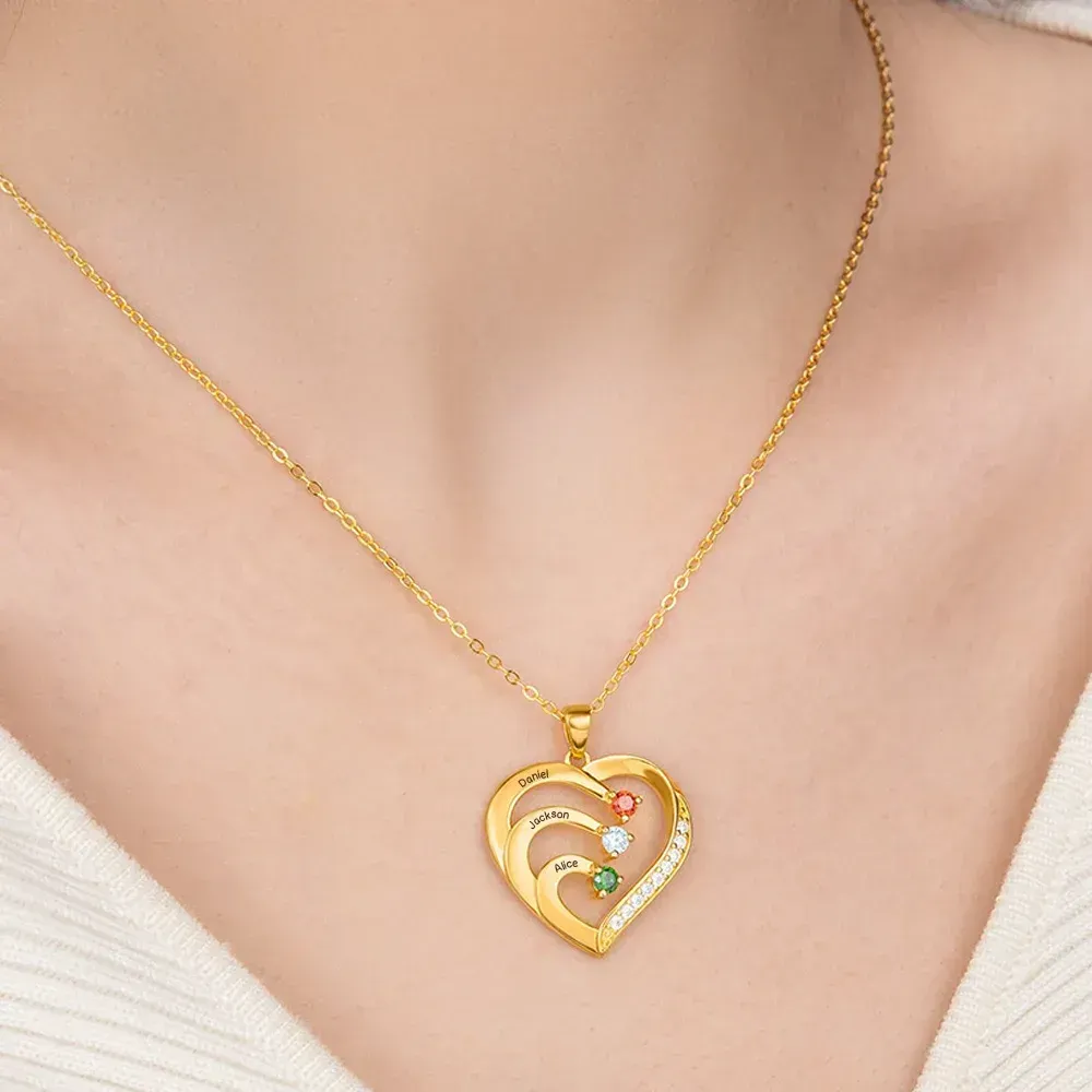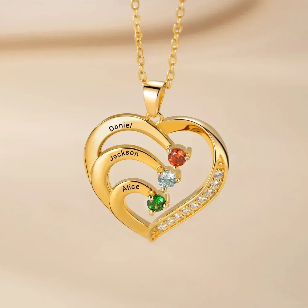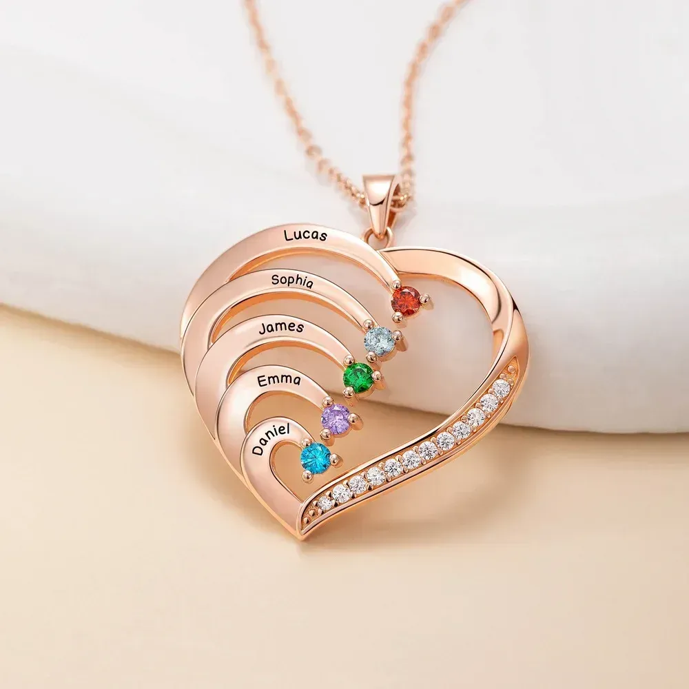 Personnalisé famille coeur pendentif collier en argent Sterling avec 1-6 noms gravés et pierres de naissance fête des mères cadeau d'anniversaire pour maman grand-mère